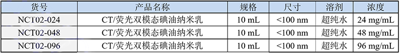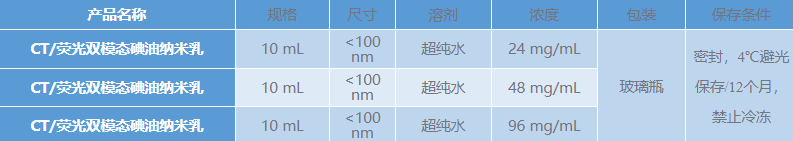 蘇州北科納米科技有限公司提供高質(zhì)量的CT/熒光雙模態(tài)碘油納米乳,為乳白色泛綠澄清液體,分散于純水中,已采用0.22微米濾膜過(guò)濾并除菌。尺寸、碘濃度、熒光強(qiáng)度在一定范圍內(nèi)可調(diào)、CT成像對(duì)比增強(qiáng)效果佳、低腎毒性、安全環(huán)保無(wú)污染,具有很好的分散性、穩(wěn)定性佳,可用于小鼠腫瘤模型及其他模型CT熒光雙模態(tài)成像等。