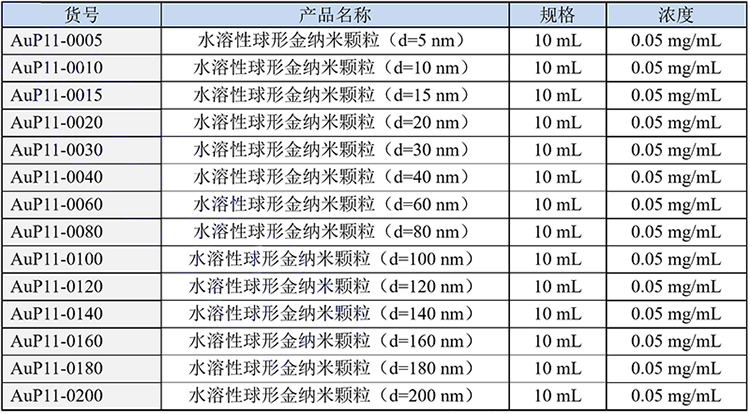 水溶性球形金納米顆粒