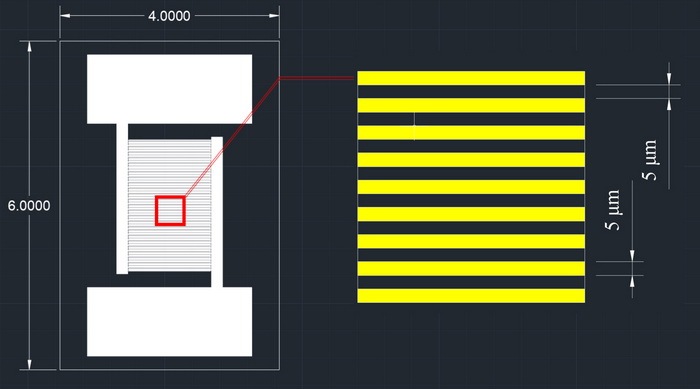 5微米硅基二氧化硅叉指金電極光電檢測傳感器芯片MEMS高精度