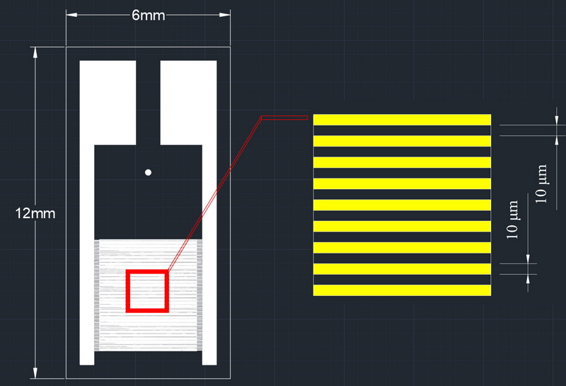 我們提供各種叉指電極,包括不同形狀,不同尺寸,不同線寬線距,不同基材(氧化鋁陶瓷,PI/PET 柔性材料,單晶硅),不同工藝(厚膜工藝,PCB工藝,MEMS工藝)。
