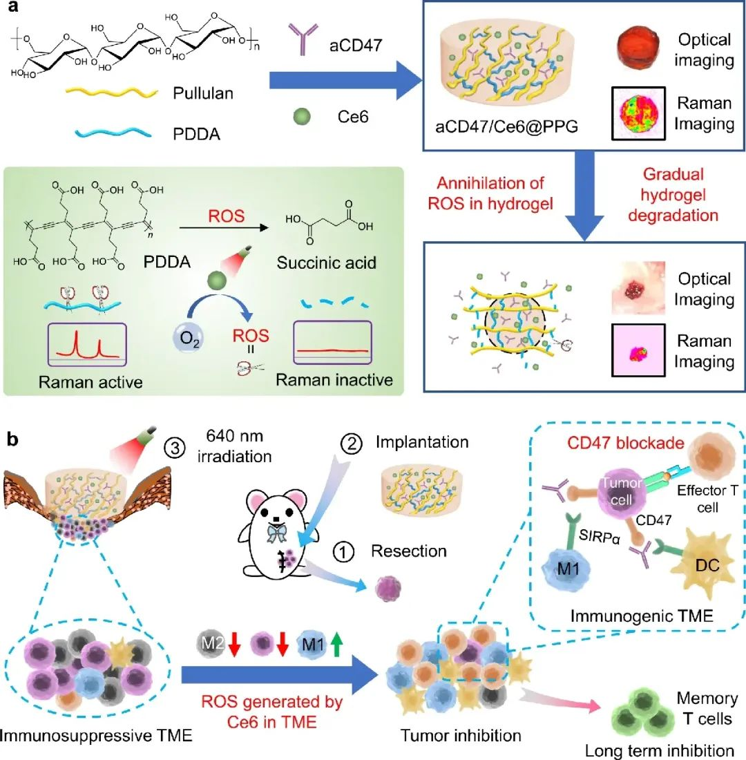 Reactive oxygen species-responsive and Raman-traceable hydrogel combining photodynamic and immune therapy for postsurgical cancer treatment文章鏈接: