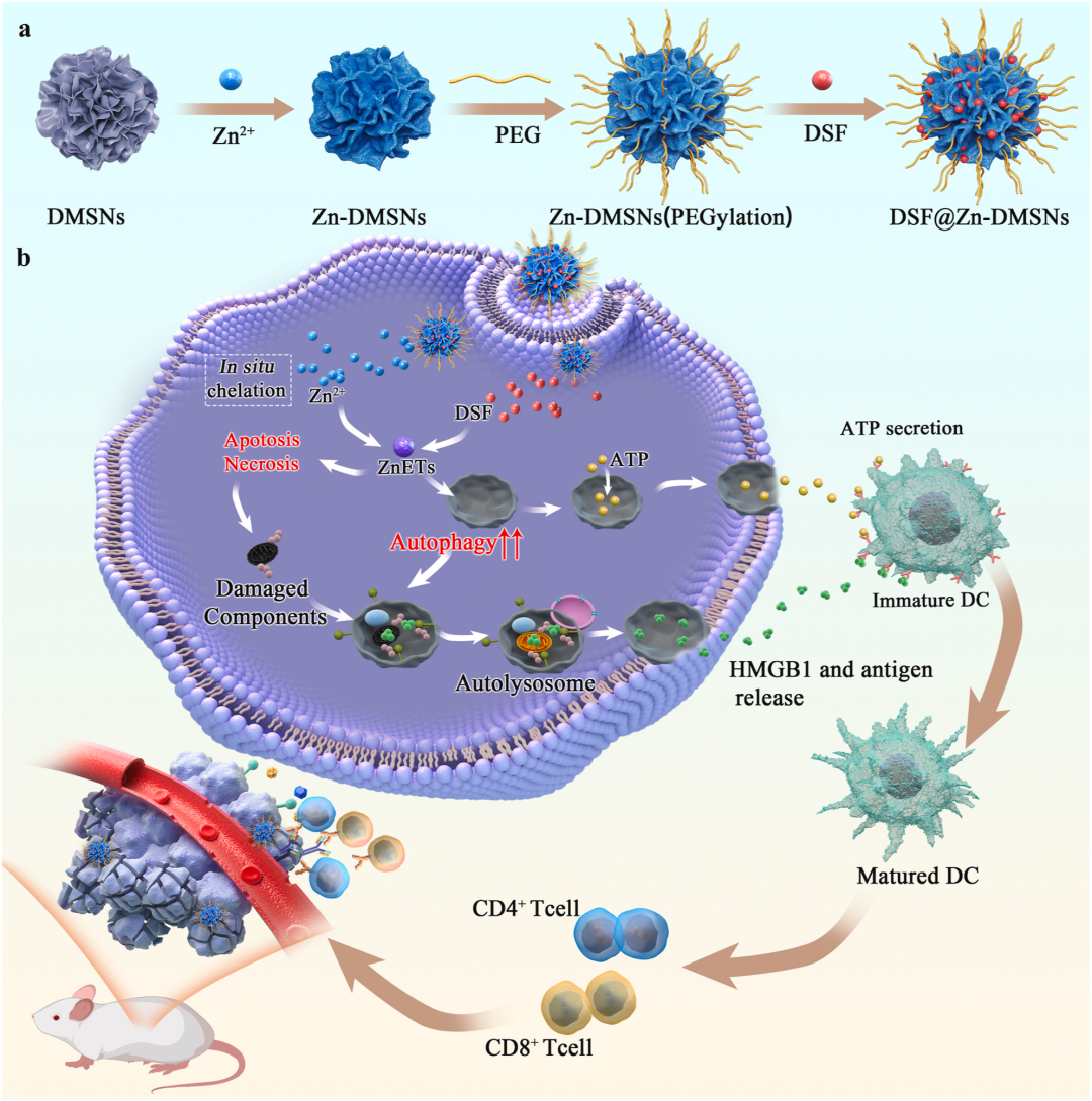 組成:鋅離子(Zn2+)、負載雙硫侖(DSF)、介孔二氧化硅納米粒子