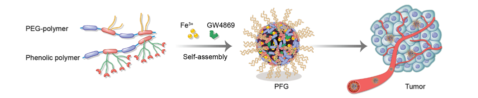 其他說明:密封狀態下保質期半年【主要優勢】PFG-MPN作為良好的結構基序,可以通過金屬-酚配位有效形成mpn攜帶治療藥物,具有獨特的特性(如快速配位過程、優良的金屬螯合能力和pH響應性)。將疏水外泌體抑制劑GW4869封裝到PFG-MPN的核心中,實現了光療mpn(PFGMPNs)。在腫瘤積累后,PFG-MPN在NIR激光照射下具有優越的NIR II熒光/光聲成像性能,可以為PTT誘導產生熱量,釋放DAMPs,促進樹突狀細胞的良好成熟。GW 4869的外泌體消耗可以打破外泌體PD-L1對T細胞功能的限制;謴偷腡細胞因