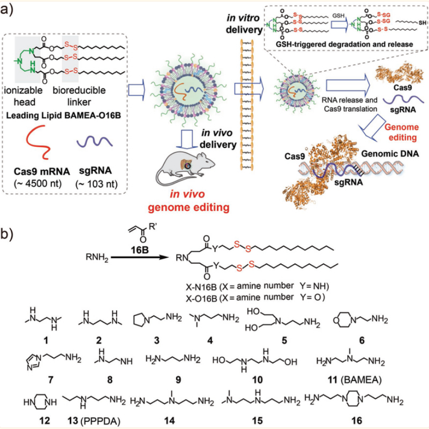 Fast and Efficient CRISPR/Cas9 Genome Editing In Vivo Enabled by Bioreducible Lipid and Messenger RNA Nanoparticles文章鏈接: