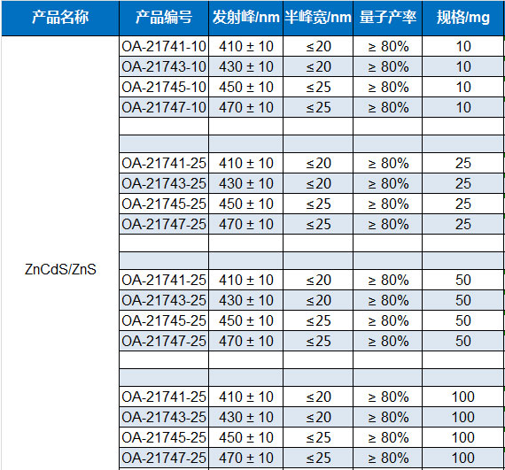 油溶性ZnCdS/ZnS量子點 高亮藍光 PL 400 nm-470 nm