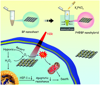 1. Pt @ BP nanohybrid combines the photodynamic activity of BP nanosheet and catalase activity of Pt NPs;
