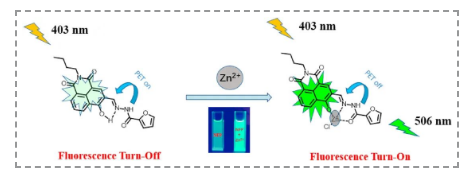 Other instructions: Half shelf life in sealed state [Main advantage] In DMSO / H2O solution (9 / 1, v / v, pH 7.4, HEPES buffer, 0.2 mM), NFP showed high selectivity and rapid response to Zn 2 + (30 s) with significant fluorescence enhancement. The detection limit (LOD) of zinc ions for NFP is 39 nM, which is well below the WHO standard (76.0 μ M). The binding ratio of NFP to Zn 2 + ions was 1:1, and the binding constant of NFP-Zn 2 + was 1.18 105 M 1.