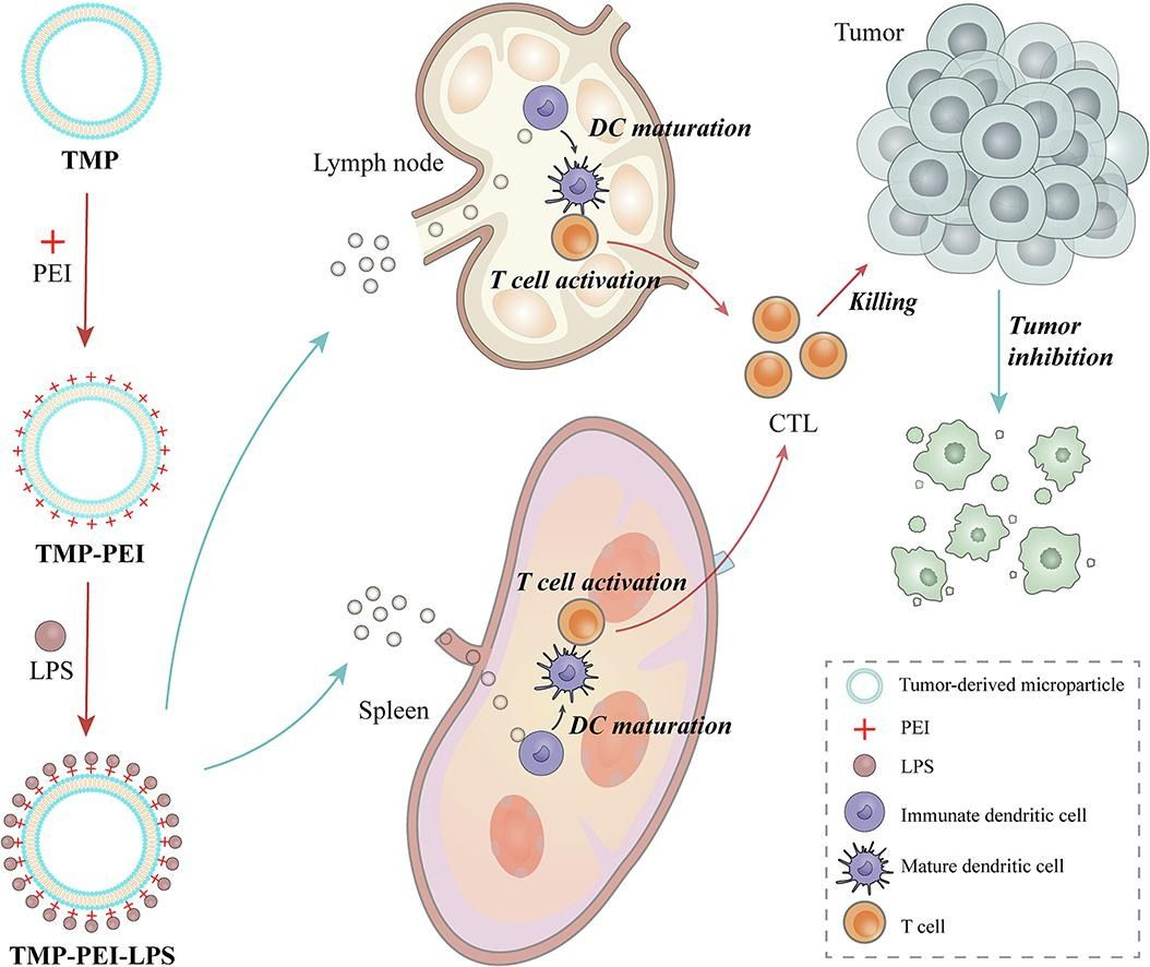 Composition: Tumor-derived microparticles + lipopolysaccharide (LPS) + polyethyleneimine (PEI) particle size: 200-500nm