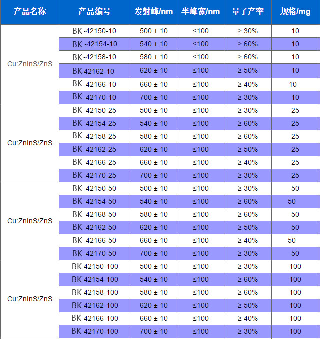 Oil-soluble Cu doped ZnInS quantum dots PL 500 nm--700 nm