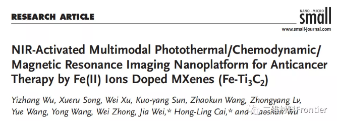 small:NIR激活多模態光熱/化學/動力學摻雜Fe(II)離子(Fe-Ti3C2)治療抗癌劑的成像納米平臺