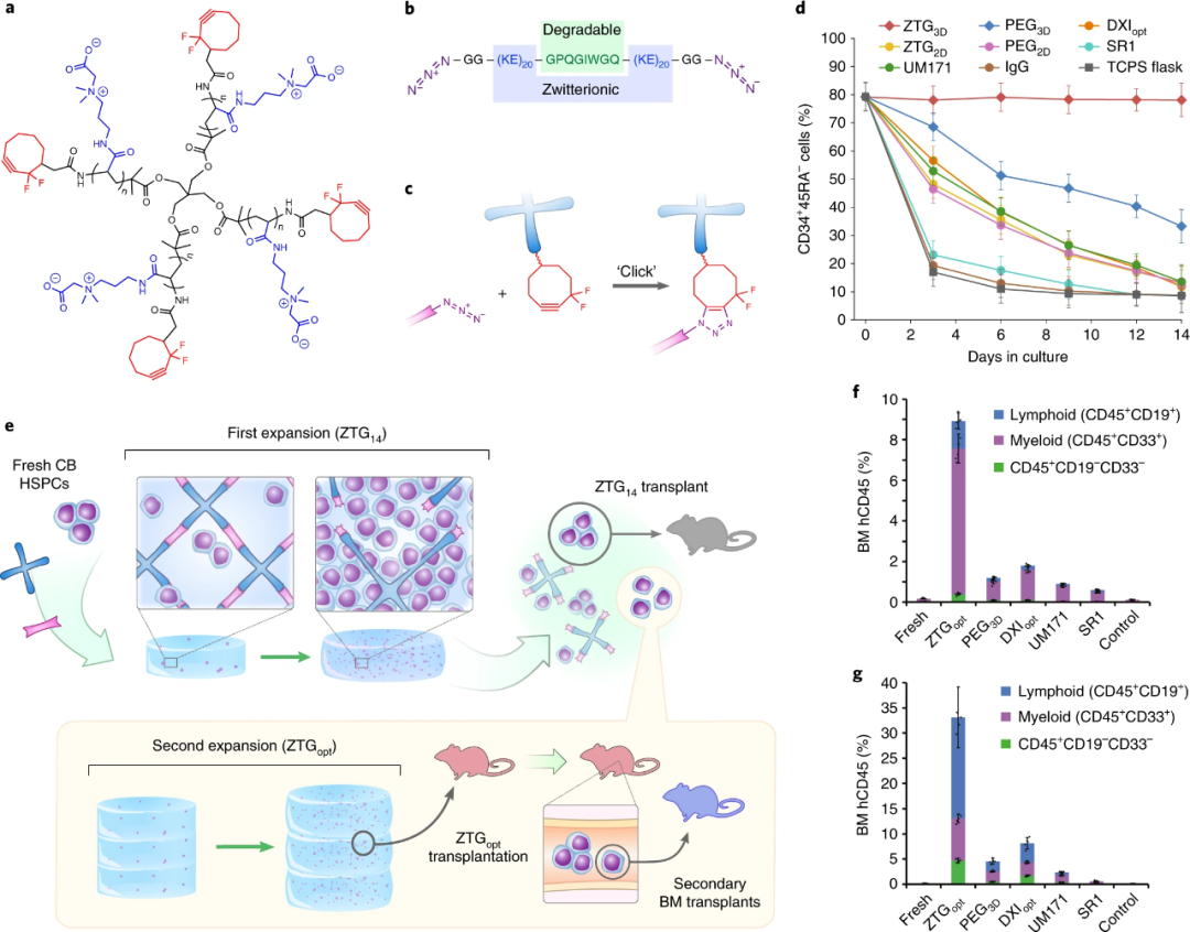 Nature Medicine:兩性離子水凝膠可有效擴增人類造血干細胞