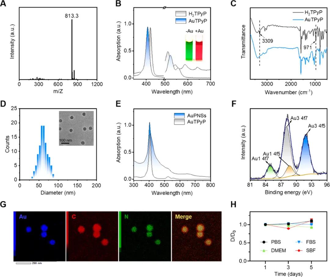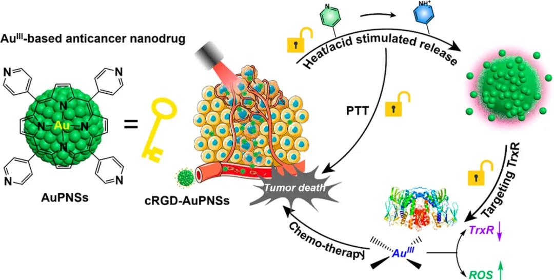 Hereby, Professor Bai Feng of Henan University developed a responsive carrier-free non-covalent self-assembly strategy, constructed a metalized Au(III) tetra(4-pyridine) porphyrin (AuTPyP) anticancer drug, and used it For the preparation of nanomedicine responsive to heat/acid dual stimulus, it can produce a more significant photothermal effect than monomer under irradiation.