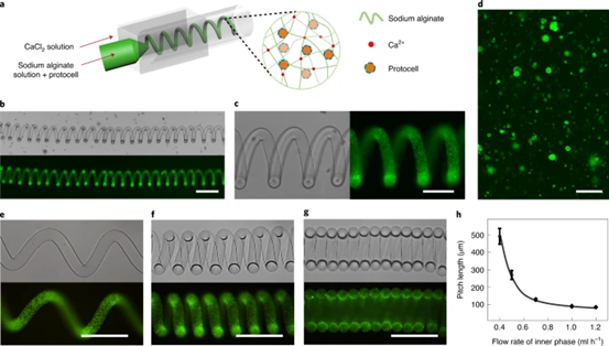 Artificial cell like communities participate in a variety of chemical interaction modes, but have little contact with the local environment. Recently, a team of Mei Li /Stephen Mann academician of University of Bristol has developed an interactive microsystem, which is based on the immobilization of a group of semi permeable protein bodies in spiral hydrogel threads to induce signal induced movement.