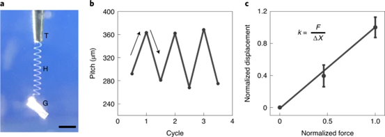 Fig. 5: the reversible contraction of the helical helix hydrogel filament.