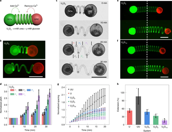 The team attached large single polynucleotide / peptide microcapsules at one or both ends of the helix like primitive cell filament to generate independent soft micro actuators that can sense and process chemical signals to perform mechanical work. Different translocation patterns are achieved through the synergistic or antagonistic enzyme reactions in the screw connector or the attached microcapsule load.