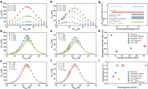 Fig. 2 thermoelectric and mechanical properties of organic hydrogel thermal batteries.