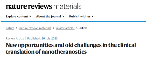 "Nature" sub-journal: Nano-Nano Therapeutics, exploring new opportunities and challenges for the therapeutic and diagnostic functions of nanoparticles!